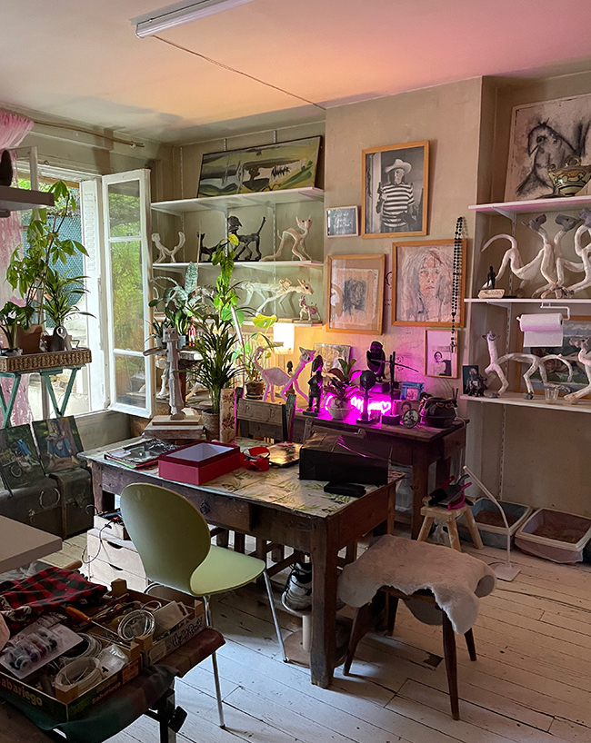 L’atelier de Sophido est aussi sa maison. Un univers artistique dense et personnel, où vie quotidienne et création s’entremêlent harmonieusement.